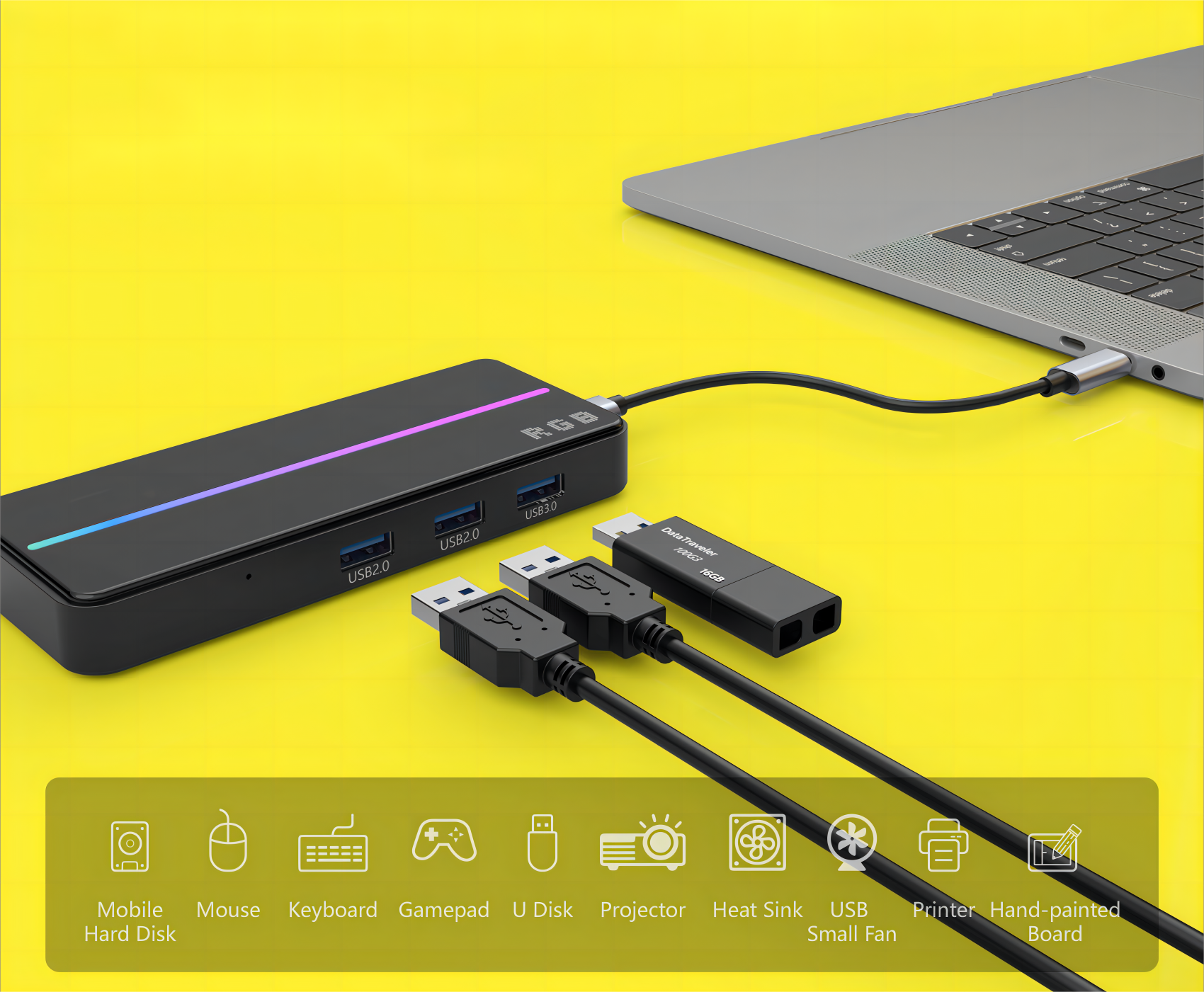 External USB flash drive, mouse, keyboard, mobile hard disk, printer, etc. Solve the problem of a single laptop interface.