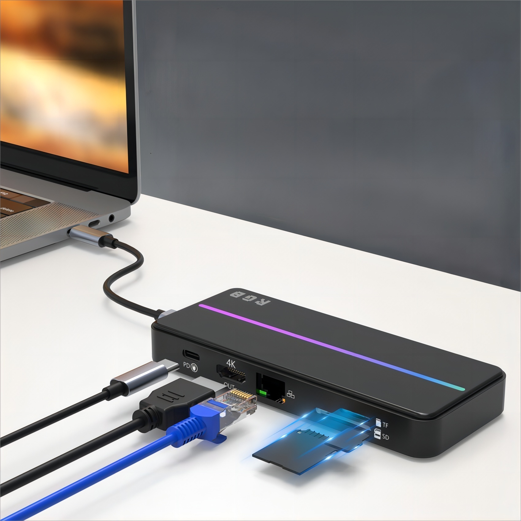 SD/TF Card reader: Compatible with SD/TF card reading and writing (*please do not insert the SD&TF card at the same time)