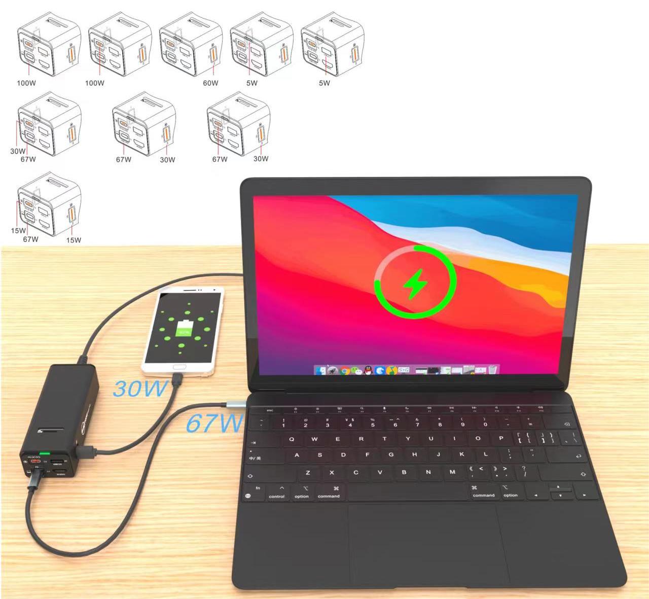 USB C1&USB: 67+30W max