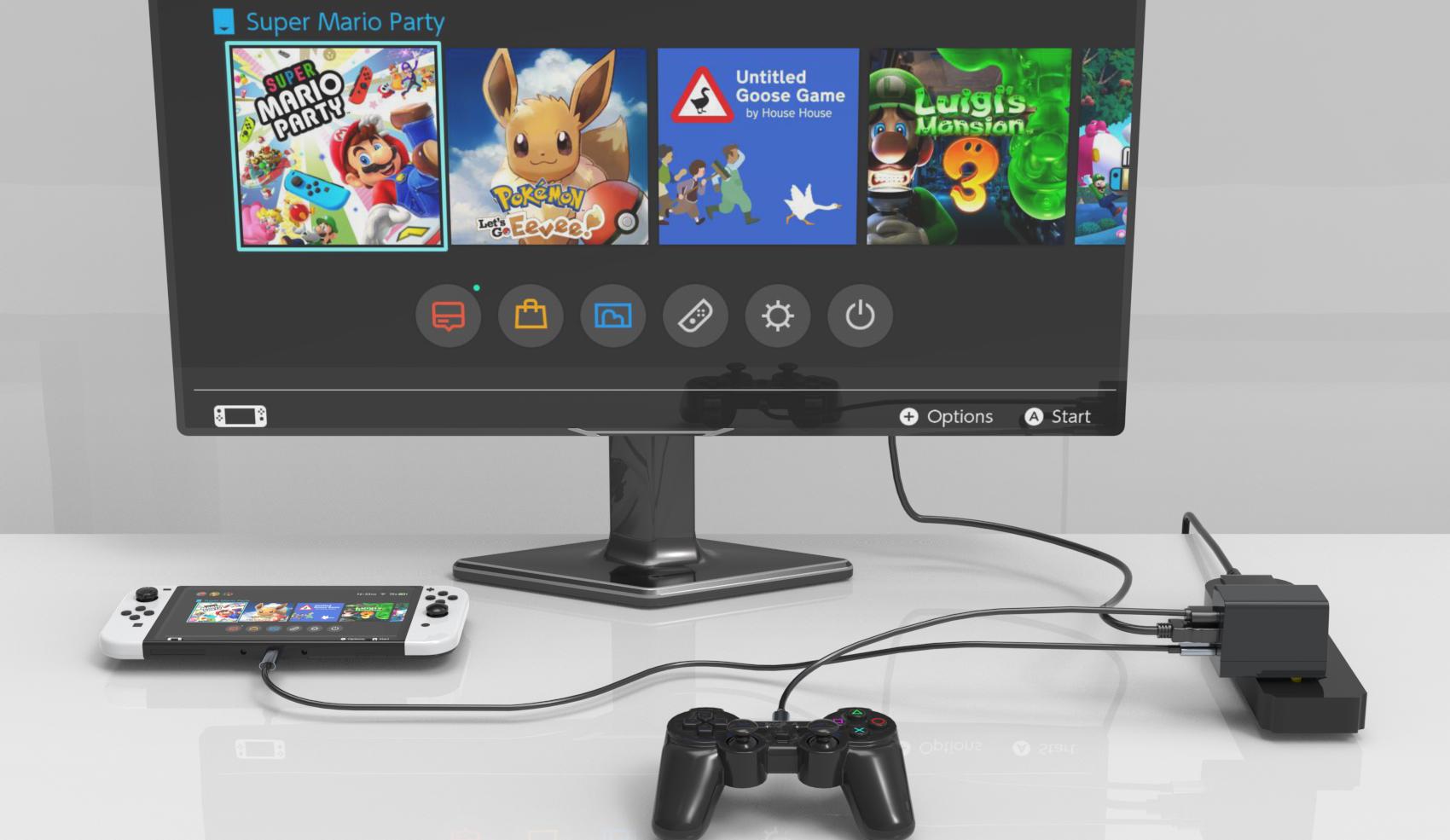 USB2.0 to power gamepad, Type C and HDMI to charging switch and zoom in the screen